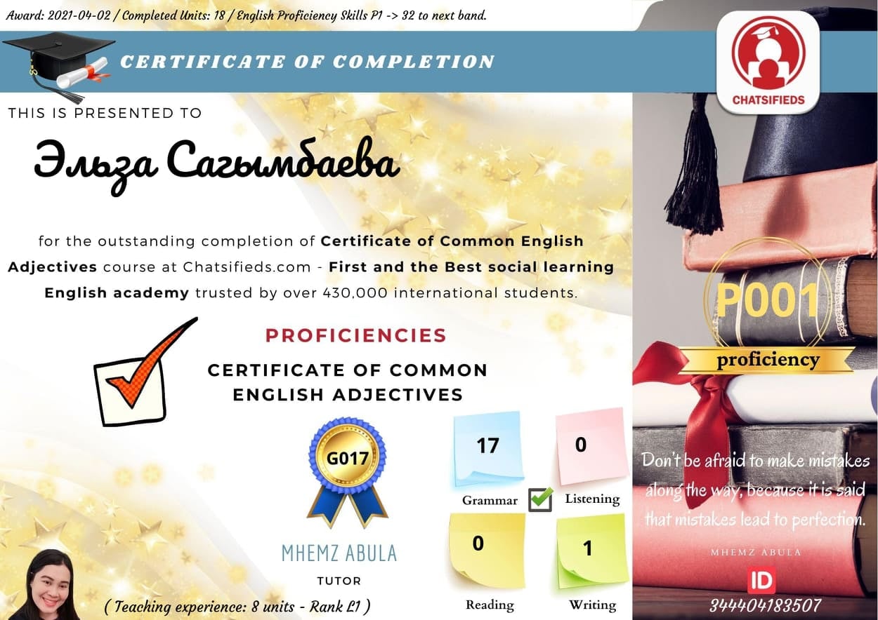 Chatsifieds English Grammar Certificate